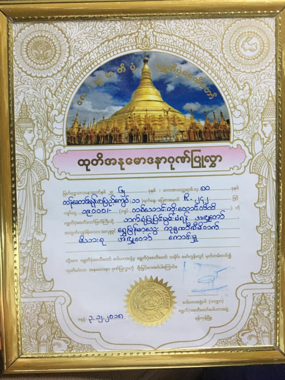 ရွှေမြန်မာ့သွေးဝန်ထမ်းများ ရတဲ့လခထဲက တစ်ယောက် တစ်ထောင်ကျပ်စီစုပြီး ရွှေတိဂုံဘုရားမှာ ပျော်ပျော်ပါးပါးသွားလှူကြ။