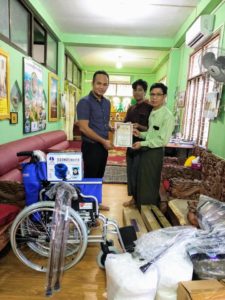 ဤသို့လှူဒါန်းပစ္စည်းများ ကူညီစီစဉ်ပေးသော Myanmar Physically Handicapped Association နှင့် DNR Wheels (Singapore) အား ကျေးဇူးအထူးတင်ပါတယ်။
