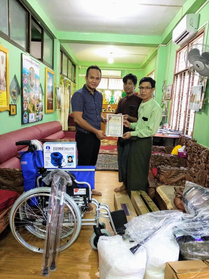 ဤသို႔လႉဒါန္းပစၥည္းမ်ား ကူညီစီစဥ္ေပးေသာ Myanmar Physically Handicapped Association ႏွင့္ DNR Wheels (Singapore) အား ေက်းဇူးအထူးတင္ပါတယ္။