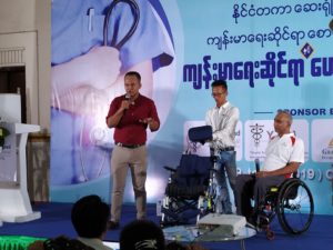 ေရႊျမန္မာ့ေသြး ကုမၸဏီ၏ မန္းေနဂ်င္းဒါ႐ိုက္တာကိုပိုင္သန္႔ ႏွင့္ DNR Wheels Pte Ltd(Singapore)၏ မန္းေနဂ်င္း ဒါ႐ိုက္တာ Mr. Raja Singhတို႔မွ Pressure Sore(ေမြ႔ယာနာ) ျဖစ္ျခင္းမွ ကာကြယ္ျခင္းႏွင့္က်န္းမာညီၫြတ္စြာ၊ကိုယ္ေနဟန္ထား မွန္ကန္စြာစနစ္တက်ထိုင္ျခင္း အေၾကာင္းကို ေဆြးေႏြးသြားပါသည္။