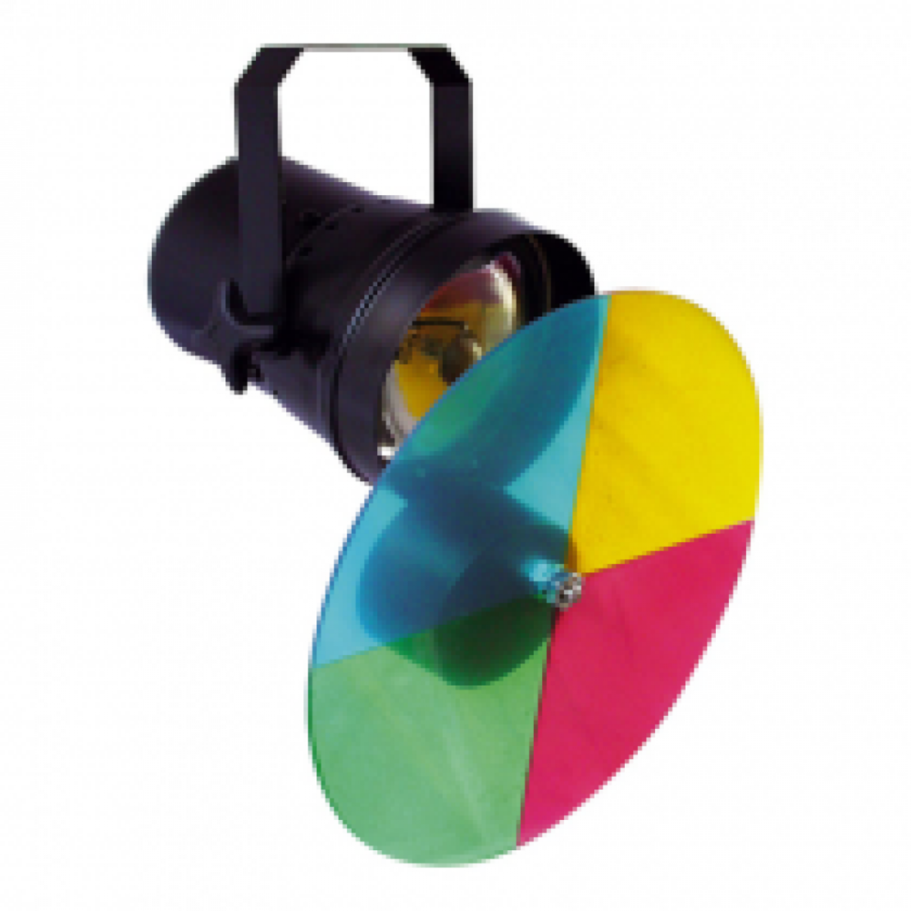 Submerge any room into coloured reflections as the colour wheel slowly revolves over the pinspot.