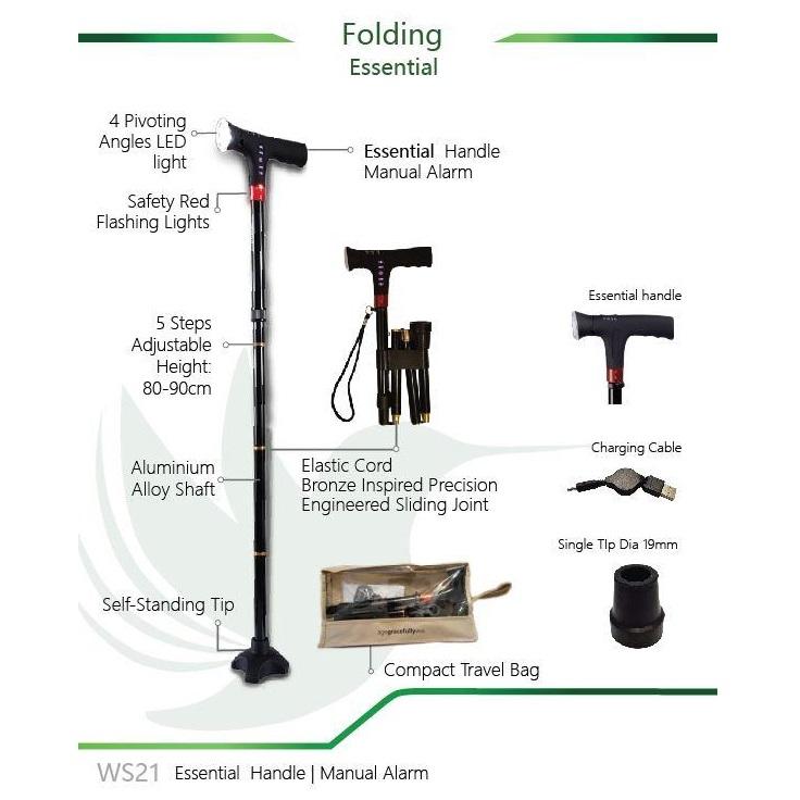What comes in a box: Smart folding walking stick with essential handle x 1Self-standing tip x 1 Single tip x 1Charging cable x 1